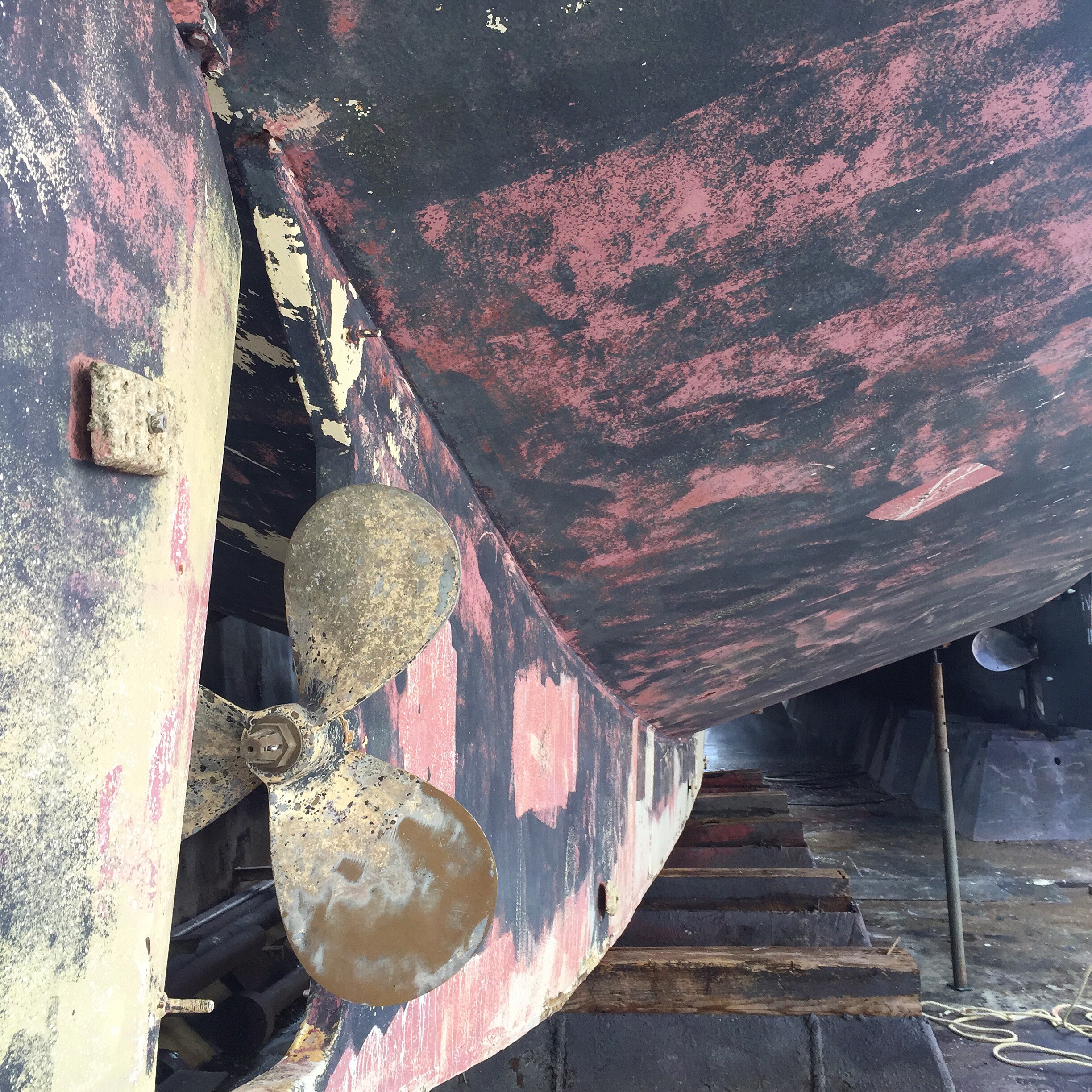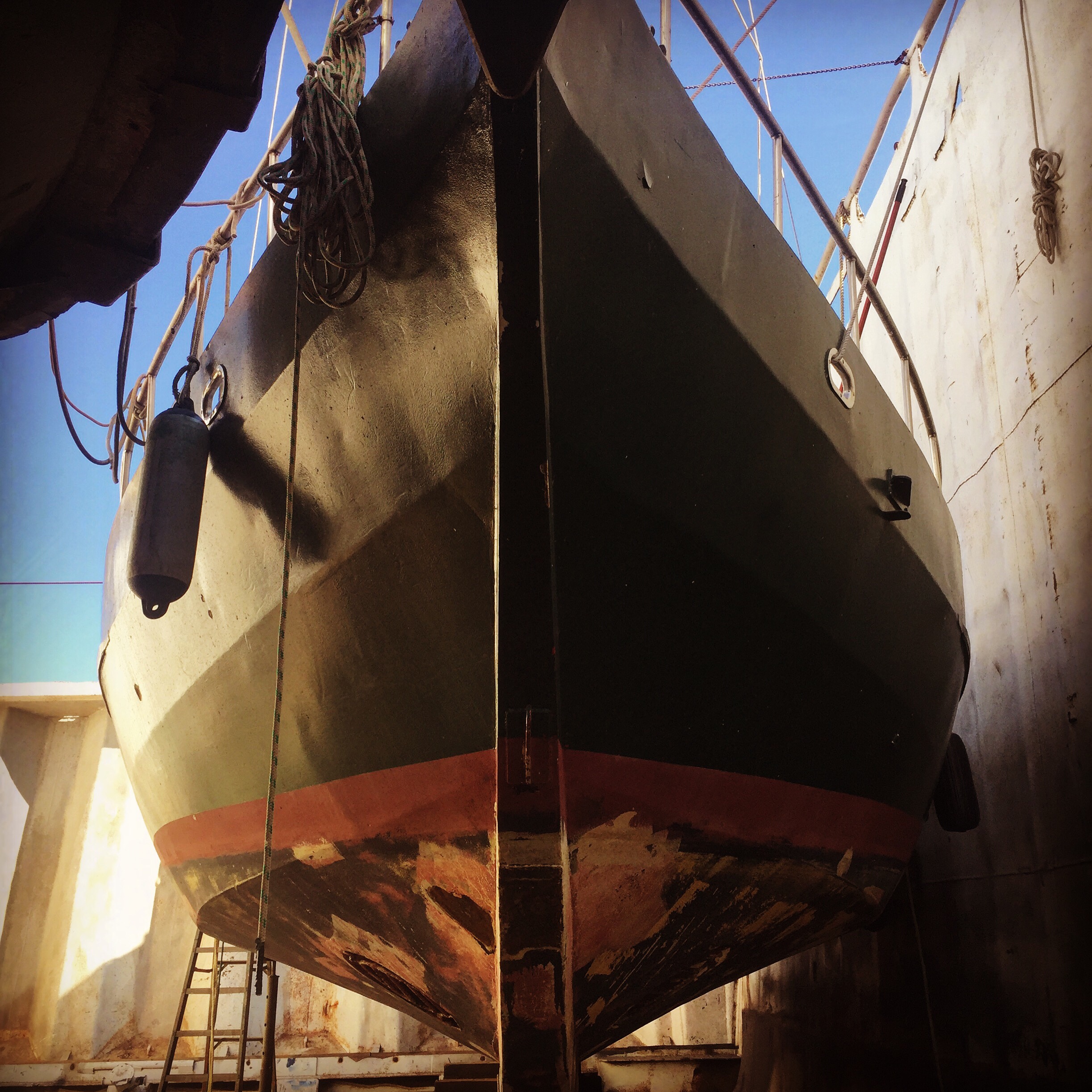 And then there was bottom paint, the antifouling. We went with black this time, and it gives Monster the illusion that she’s bigger than she really is. It was December 9th when Gordon applied the last coating. We felt a huge sigh of relief. The painting was done! During the painting process we also replaced some steel on the keel. We are rather fortunate that Monster is such a finely built vessel, there were no surprises when we initially hauled out.