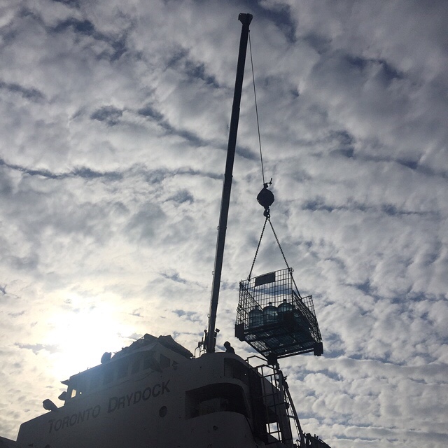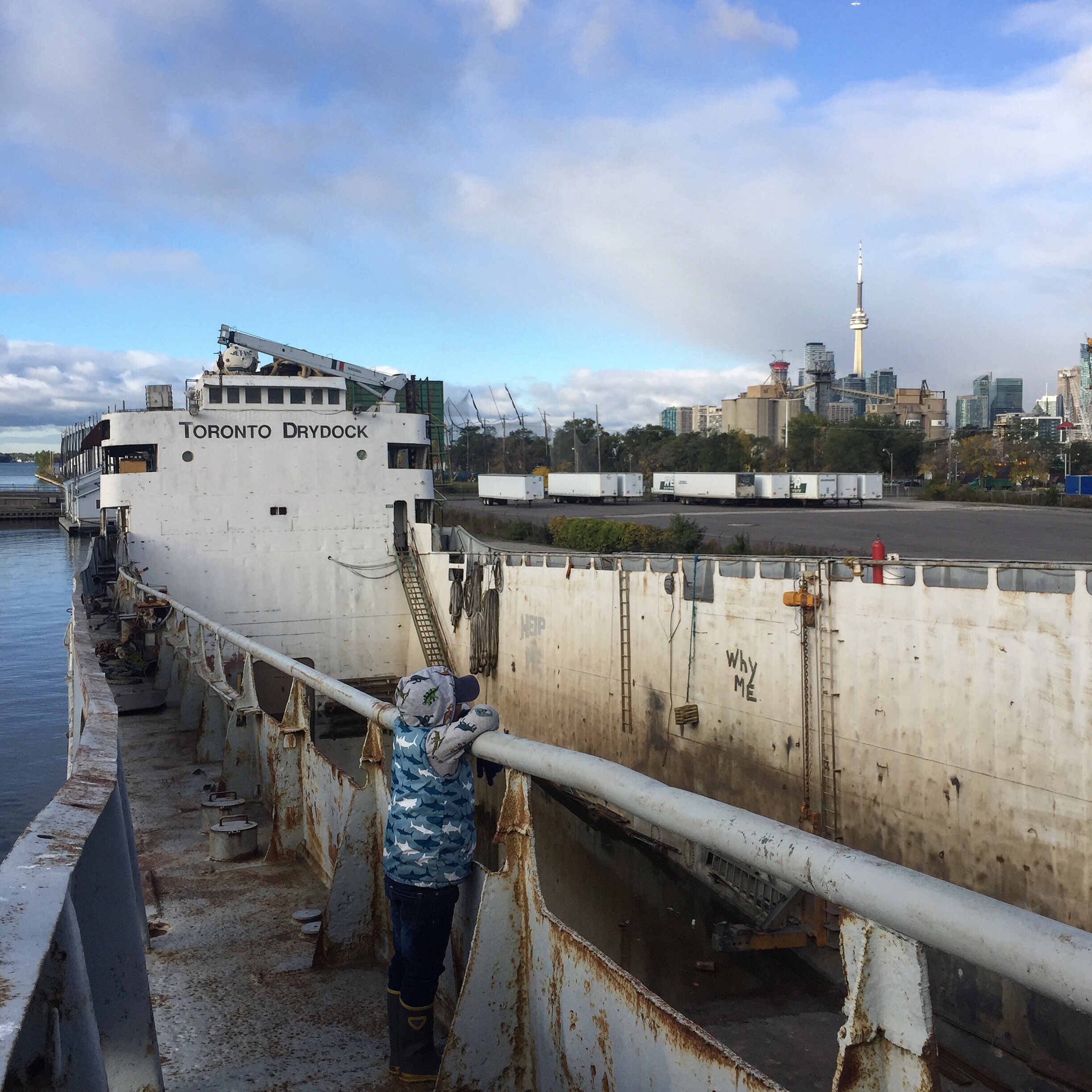 We motored up the shipping channel awaiting the lift bridge to raise for us, her bells and alarms tolling. Before long we were all secure along the wall by the Toronto Drydock. And wouldn’t you know that just before the scheduled day to lay Monster into the Drydock, Gordon was called off onto a Tug Boat job, taking him out into the middle of the lake as the weather permitted, for several days at a time.